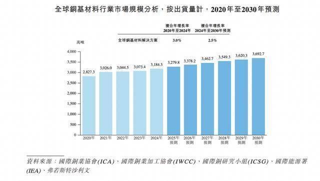 铜基材料的市场需求与宏观经济状况息息相关。在基础应用领域保持稳定发展、新兴应用领域强势拓展的驱动下,全球铜基材料行业整体呈现持续增长态势。全球铜基材料行业市场规模由2020年的约2827.3万吨增长至2024年的约3184.3万吨,期间复合年增长率为3.0%。在5G通讯、AI技术等新兴领域的驱动下,市场对高端铜基材料的需求持续攀升,预计至2030年全球市场规模将达到3692.7万吨,2024年至2030年间复合年增长率为2.5%。