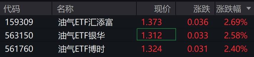 受盘面影响,油气相关ETF涨超2%。