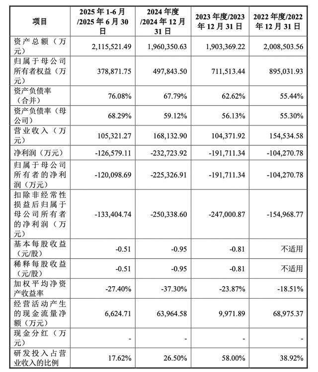 据招股书,2022年-2024年及2025上半年,粤芯半导体实现营收分别为15.45亿元、10.44亿元、16.81亿元、10.53亿元;归母净利润分别为-10.43亿元、-19.17亿元、-22.53亿元、-12.01亿元。
