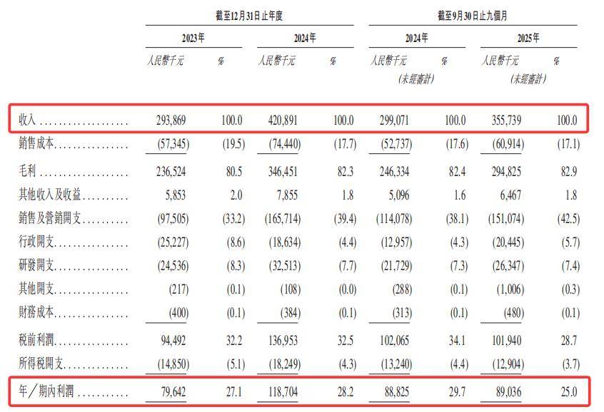 然而,净利润情况却不容乐观。2023年到2025年前三季度,净利润分别为7964.2万元、1.19亿元、8903.6万元。其中,2025年前三季度净利润同比仅微增0.24%,近乎停滞,与营收增速形成鲜明反差。