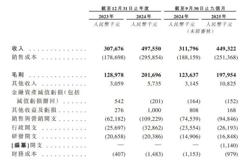 近几年,格米莱的营业收入实现了跨越式增长,增速远超行业平均水平。据招股书披露,公司的总收入从2023年的3.08亿元大幅增长至2024年的4.98亿元,同比增幅高达61.7%。这一增长势头在2025年得以延续,2025年前九个月,收入已达到4.49亿元,较2024年同期的3.12亿元增长44.1%。