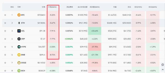 此外,比特币引领的抛售潮加速,加密货币主要币种持续下挫,截至发稿,比特币跌超5%报72646美元/枚,SOL重挫逾7%,ETH跌超5%。