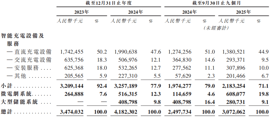 招股书显示,该公司业务涵盖三大类别:智能充电设备及服务,微电网系统,以及大型储能系统。