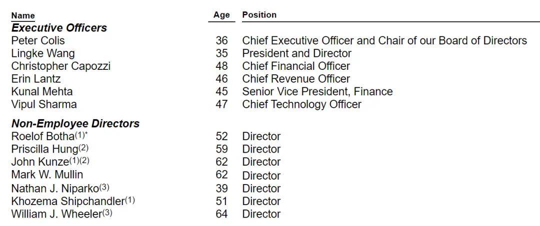公司董事长、CEO Peter Colis持有20.6%的B类股,及19.8%的投票权;Lingke Wang有20%的B类股,及19.2%的投票权。