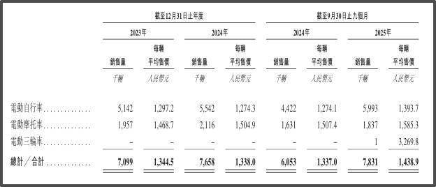 在存量竞争格局下,作为年销量超600万辆的企业,台铃2023年和2024年电动自行车平均售价基本维持在1300元/辆以下,2025年前九个月提升至1393.7元/辆,但仍未突破1400元。而这一区间是外卖骑手、下沉市场消费者等价格敏感群体的核心选择,也是行业价格战最激烈的领域,企业定价权极弱,难以通过提价转嫁成本压力。