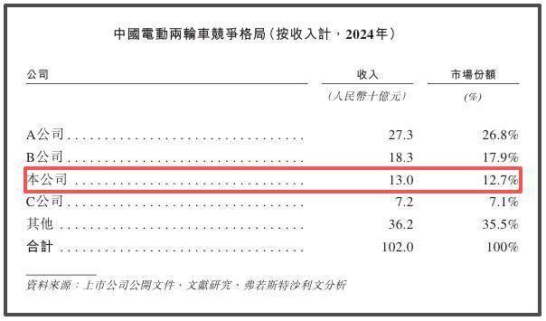 据招股书介绍,台铃以“低碳出行”为愿景,是国内“长续航电动两轮车”的定义者。根据弗若斯特沙利文的资料,按2024年电动两轮车的收入计,台铃在中国内地排名第三,市场份额约为12.7%,仅次于雅迪和爱玛。