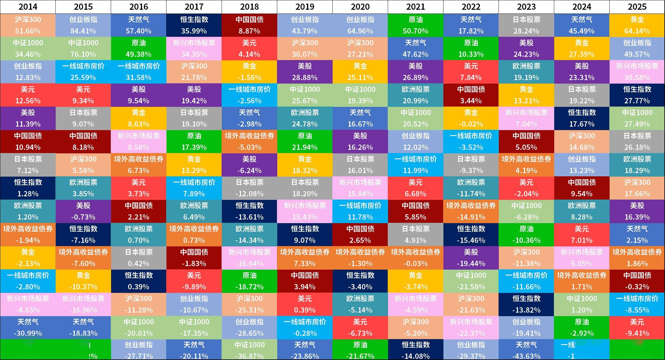 过去的一年堪称金属商品的大年,黄金、白银、铜等商品都收获了高额的涨幅。但另一方面,同样是商品,原油、焦煤等黑色系商品则表现疲软,以及前几年市场讨论热烈的中债、美股等资产的热度也逐渐下降。实际上回顾历史会发现,没有任何一种资产可以做到永远上涨,若想要规避大涨大跌的虚幻而切实留住收益,力争实现稳健的增长,将资金动态的调配到不同类型的资产里是一个很好的解决方案。
