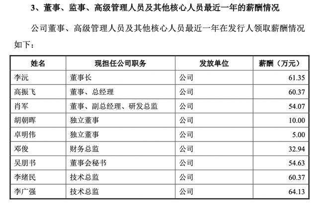 薪酬方面,最近一年,李广强在九安智能拿到公司最高薪酬,为64.13万元;其次是李沅,年薪61.35万元。另外,李绪民的年薪为60.37万元。