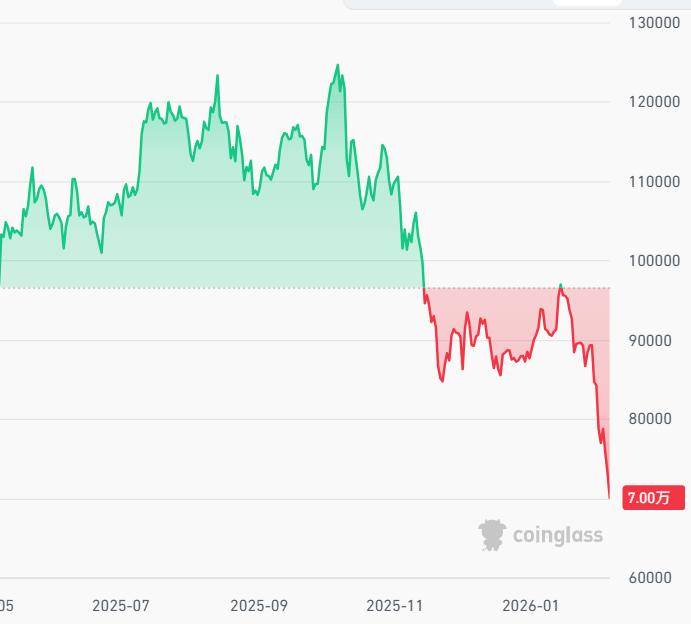 比特币在去年10月初创下12.5万美元的历史新高后,便开始了跌跌不休之旅,目前比特币7万美元的价格水平,相较于最高点已经重挫了三分之一,近30天跌超25%。而且,比特币连续4个月收跌,已是自2018年以来最长的连续跌幅。