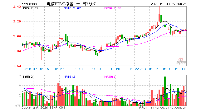 1月30日,电信ETF汇添富(560300)开盘跌0.43%,报2.071元。电信ETF汇添富(560300)重仓股方面,中国移动开盘跌0.10%,中国联通跌0.58%,中国电信涨0.00%,中国卫通跌1.35%,中际旭创涨0.38%,银之杰跌1.18%,新易盛跌1.15%,中兴通讯跌1.29%,天孚通信跌1.39%,中天科技跌0.47%。