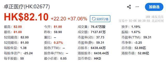 乐居财经 王敏 2月6日,卓正医疗(HK:02677)在港交所挂牌上市,海通国际、浦银国际联席保荐。其开盘涨37%,总市值52.86亿港元。也是今年第一个民营诊所IPO。