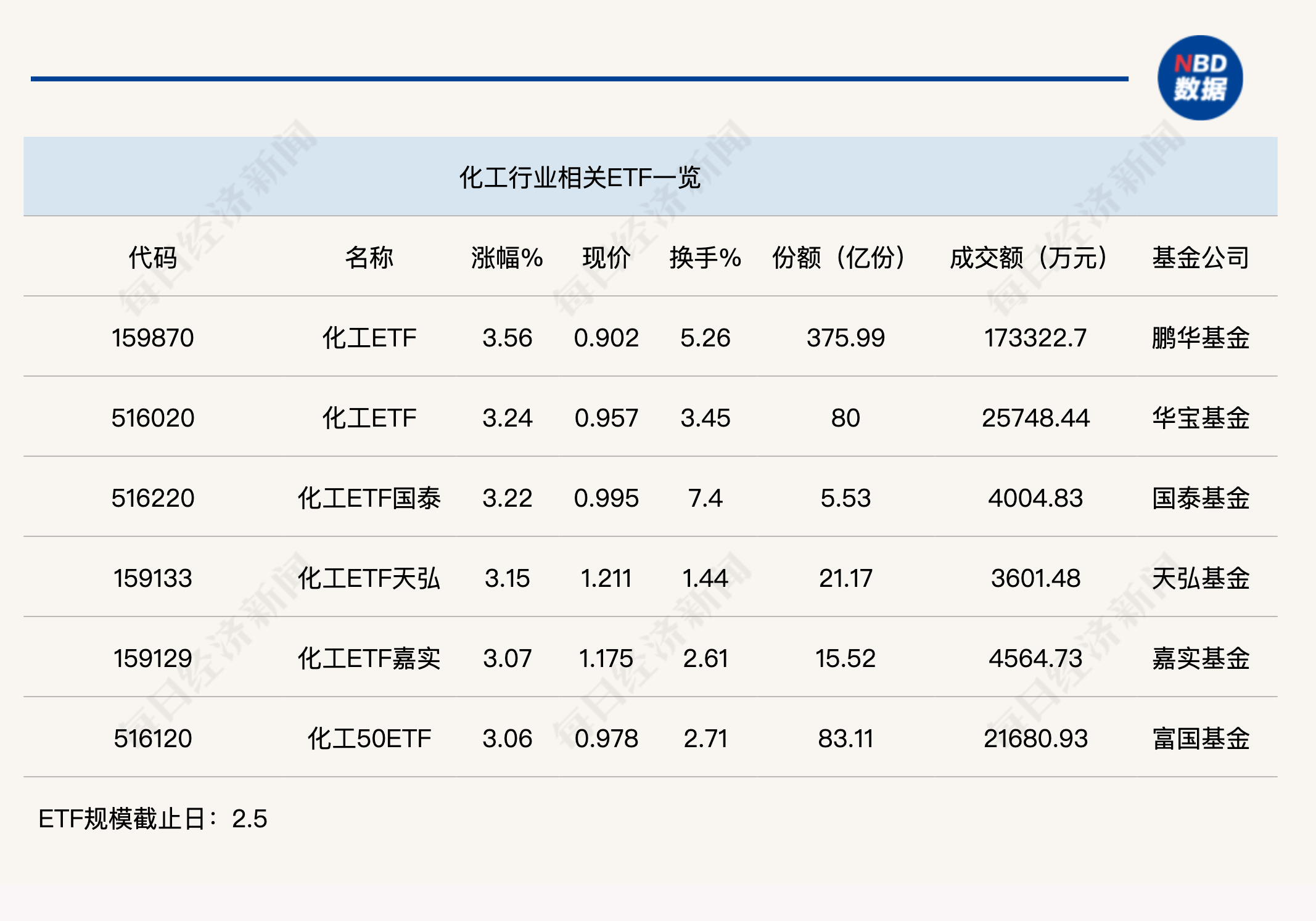 行业ETF风向标丨化工ETF量价齐升,6只化工ETF半日涨幅超3%