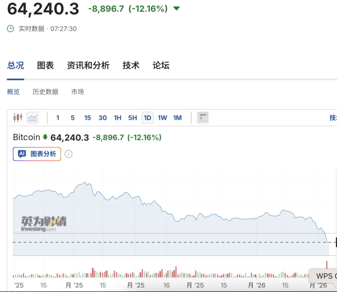 比特币跌破65000美元