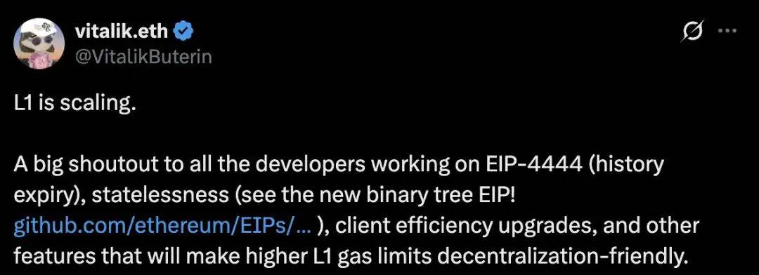 早在 2025 年 2 月 14 日,Vitalik 就释放了一个关键信号。他发表了一篇名为《即使在 L2 为重的以太坊中也有理由拥有更高的 L1 Gas 上限》的文章,明确表示「L1 正在扩展 (L1 is scaling)」。这句话在当时听起来更像是对主网原教旨主义者的安慰,但现在回看,那其实是以太坊主网开始重新与 Layer2 竞争的冲锋号。