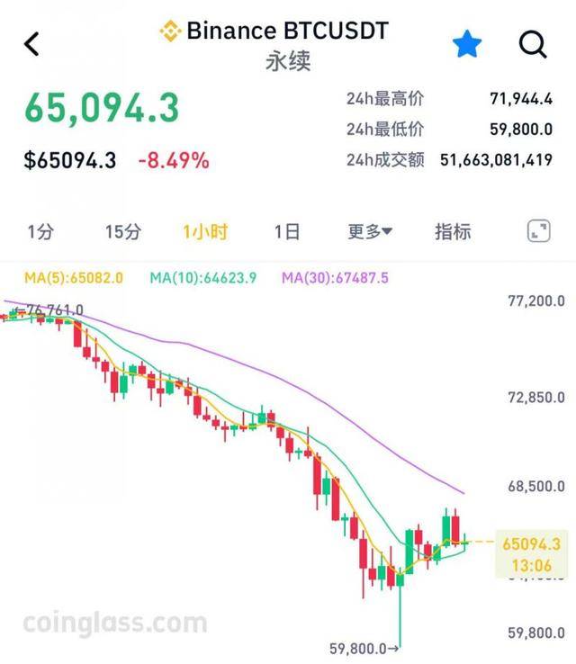 截至发稿,比特币最新价格为65094.3美元,跌幅缩小至8.5%。伴随比特币的暴跌,加密货币市场集体震荡。以太坊跌破1800美元,日内最大跌幅近20%;Solana一度跌至67.29美元,跌幅达28%;XRP、DOGE等山寨币跌幅普遍超过10%。