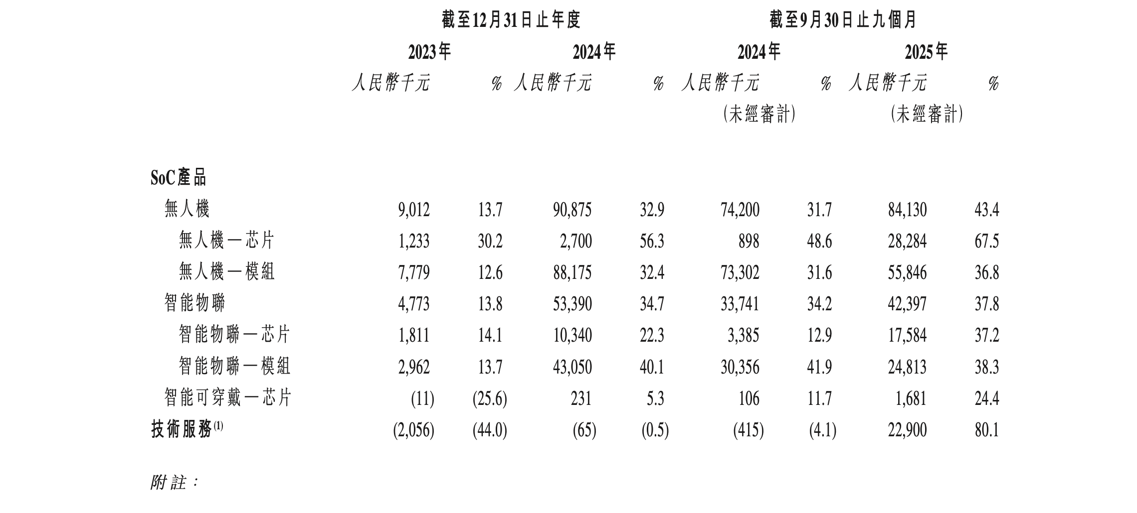 招股书显示,2023-2024年及2025年前三季度(下称:报告期),酷芯微SoC产品中无人机与智能物联部分是其收入大头。其中,来自无人机部分的收入分别约901.2万、9087.5万、8413.0万元,占比分别为13.7%、32.9%、43.4%;来自智能物联的收入分别约477.3万、5339.0万、4239.7万元,占比分别为13.8%、34.7%、37.8%。