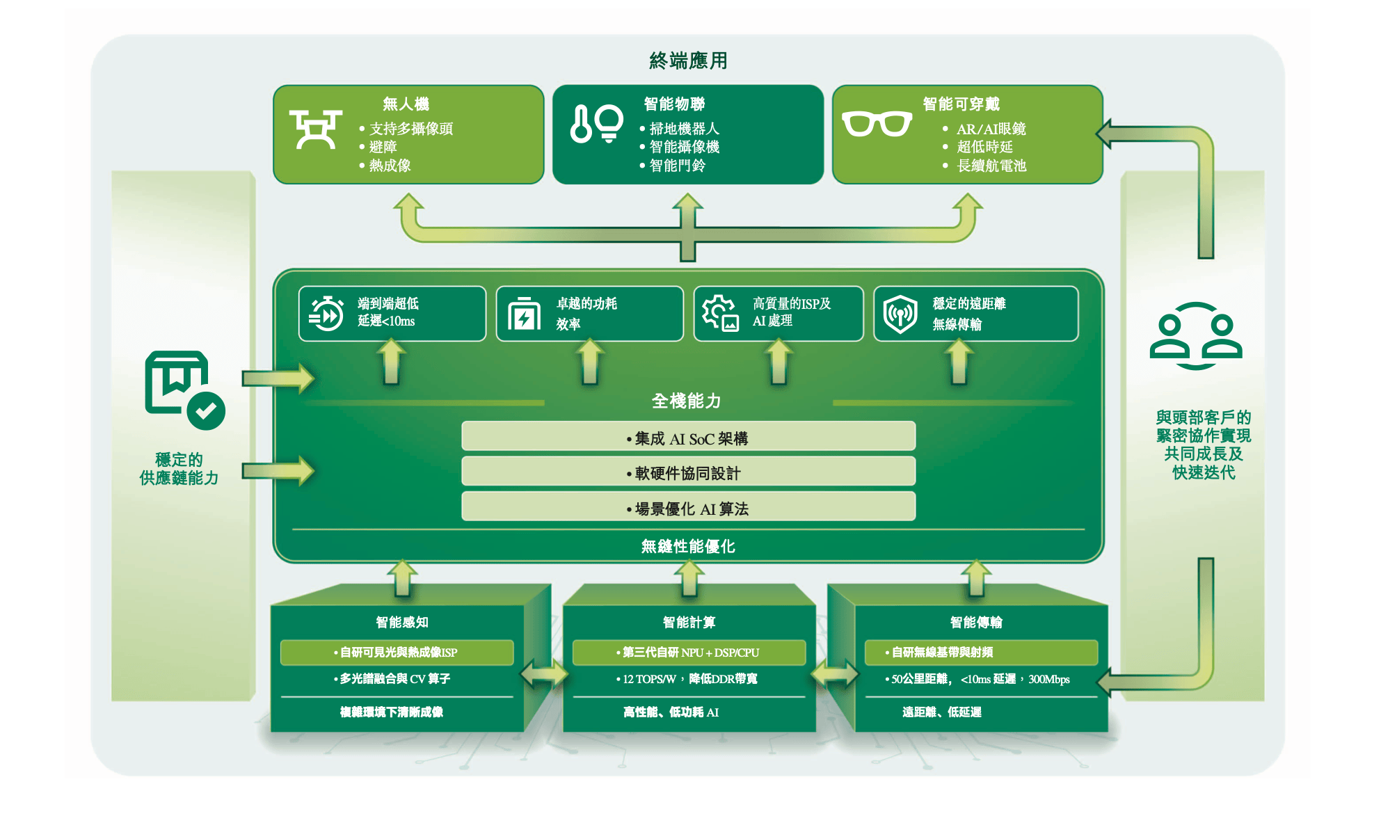 酷芯微采用无晶圆厂经营模式,专注于AI SoC产品与解决方案的研发、设计及销售,提供以视觉处理AI SoC与无线视频传输SoC为核心的集成化解决方案,产品组合融合芯片设计、软件工具包、场景优化算法及工程支持服务,协助客户在快速演进的AI应用环境中缩短开发周期并加速产品上市进程。