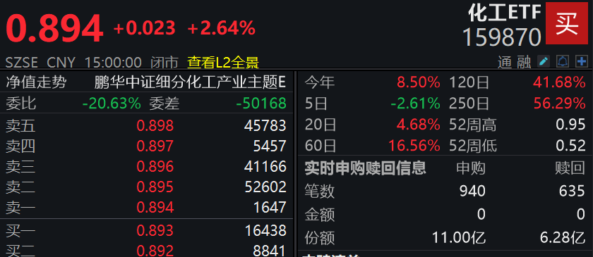 化工股今日集体走高,化工ETF(159870)盘中净申购4.72亿份,实现连续4天净流入。