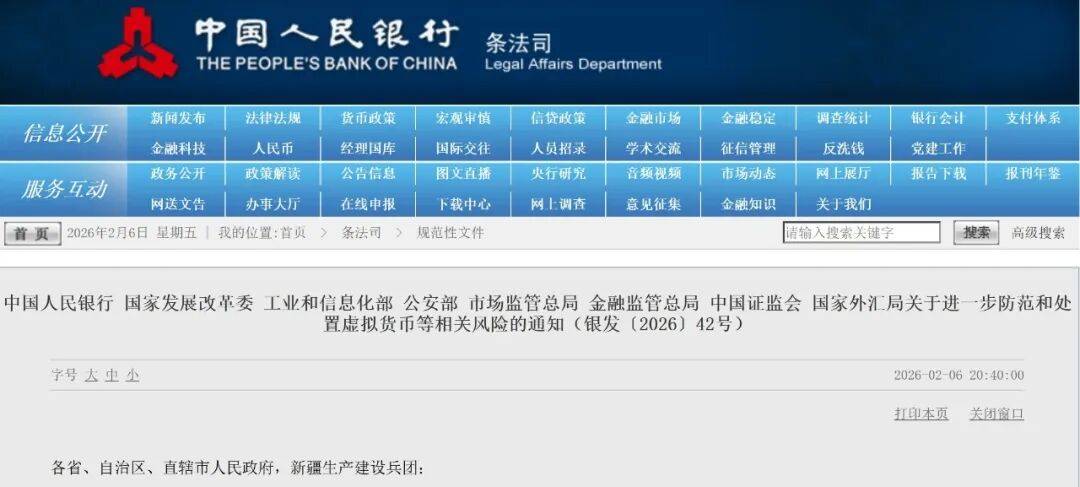 中国人民银行 国家发展改革委 工业和信息化部 公安部 市场监管总局 金融监管总局 中国证监会 国家外汇局关于进一步防范和处置虚拟货币等相关风险的通知(银发〔2026〕42号)