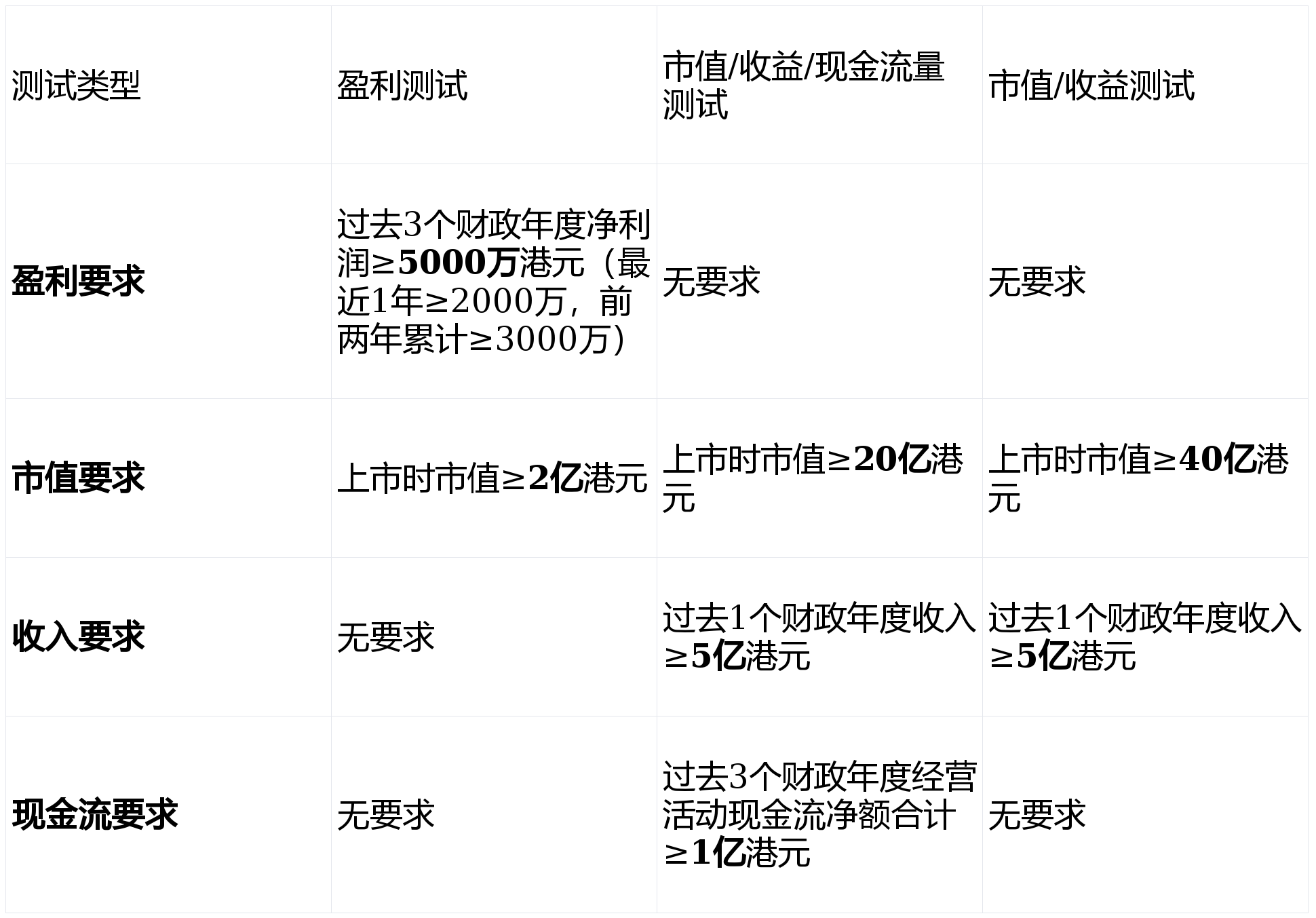 香港联合交易所(港交所)主板是大多数企业的目标,其上市条件主要围绕财务、市值、股权和管理稳定性设定,核心是“三大财务测试”,满足其一即可:
