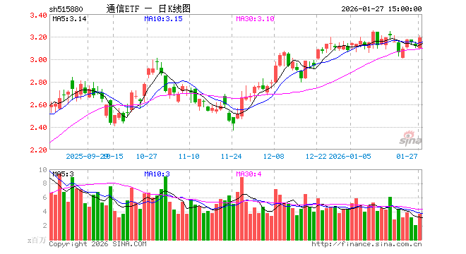 1月27日,通信ETF(515880)涨2.41%,成交额11.80亿元。当日份额减少1200.00万份,最新份额为45.05亿份,近20个交易日份额减少1.77亿份。最新资产净值计算值为143.68亿元。