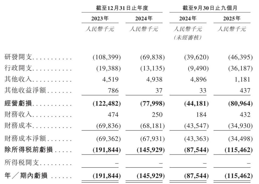 丹诺医药2025年前9个月研发开支为4640万元,行政开支为3619万元,运营亏损为8096万元,期内亏损为1.15亿元。