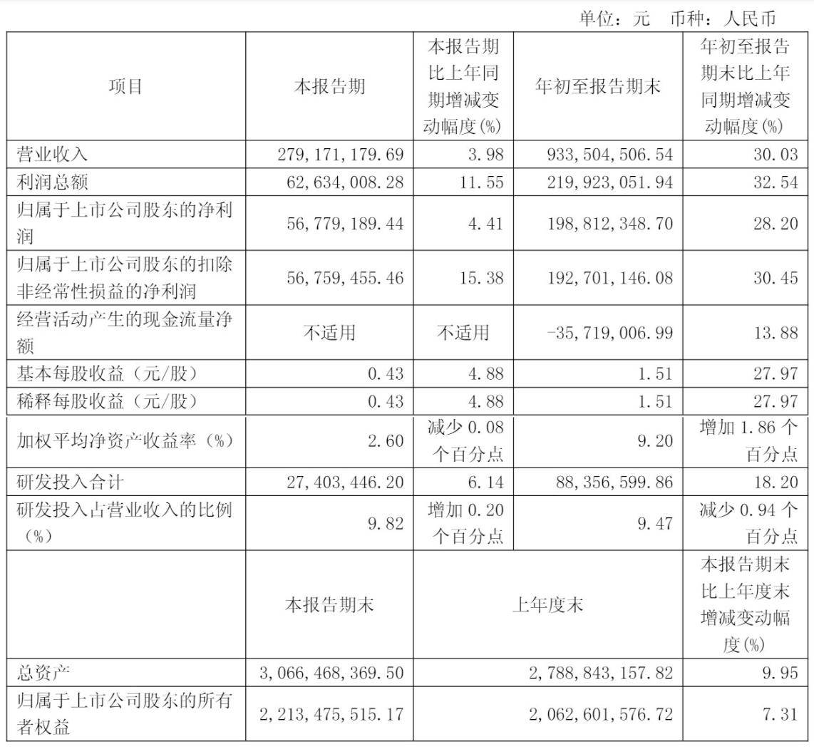9个月营收9.34亿 净利2亿