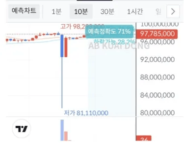 交易所数据显示,周五晚间Bithumb平台上的比特币价格一度从约9829万韩元(约67188美元)短暂下挫17%,跌至8110万韩元(约55400美元)。交易量随之飙升。