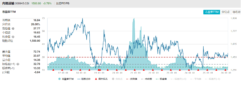 此外,航空长逻辑仍在,供给增速放缓+高客座率+反内卷预期+人民币破7等多因素共同催化下,板块盈利改善或可期待。目前内地运输指数估值处于历史低位,具备配置价值,建议关注交运ETF(561320)。