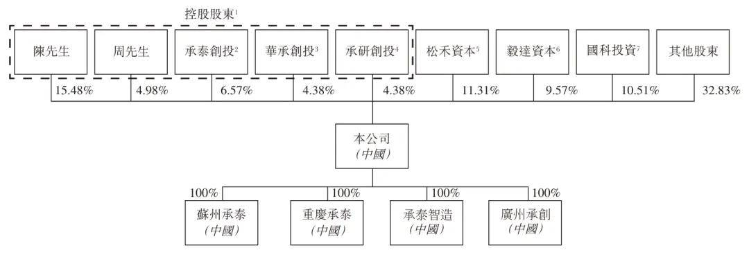 IPO前,陈承文持股为15.48%,周珂持股为4.98%,员工持股平台承泰创投持股为6.57%,华承创投、承研创投分别持股为4.38%;