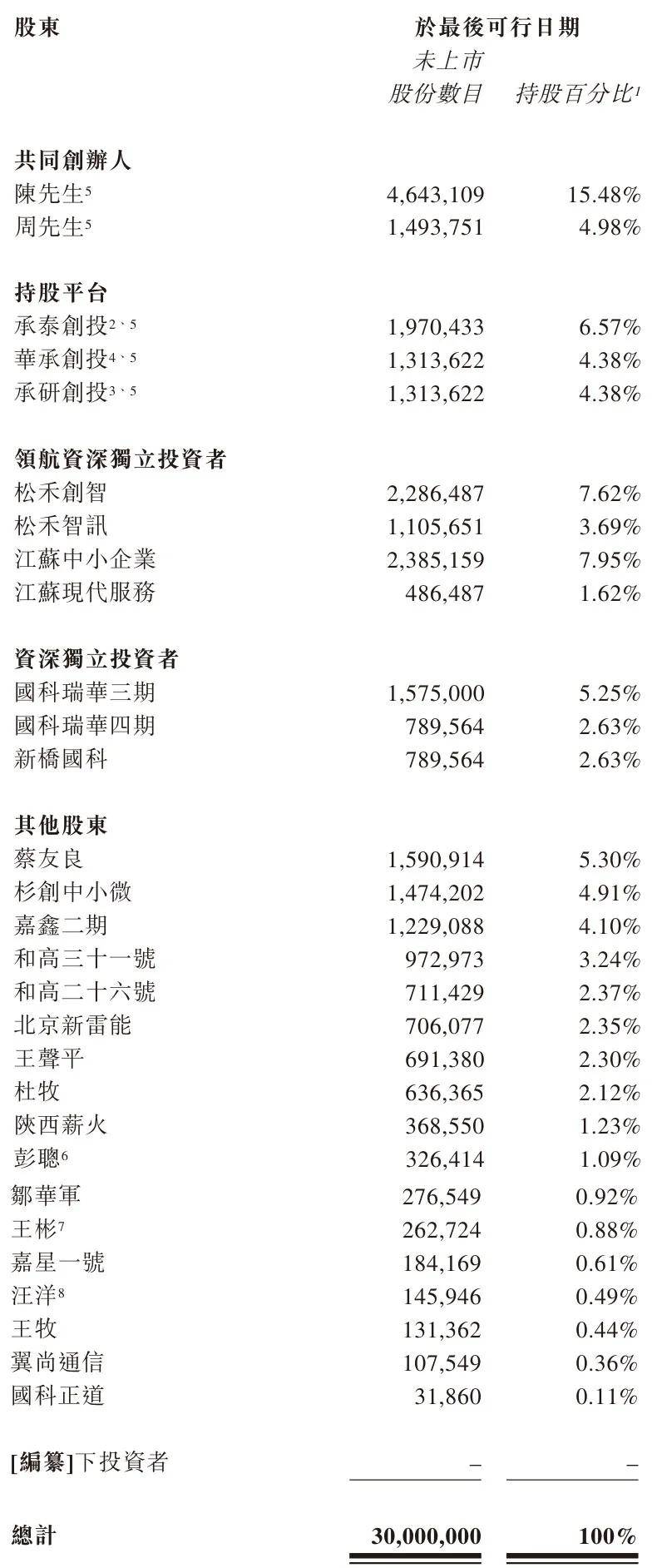 松禾创智持股为7.62%,松禾智讯持股为3.69%,江苏中小企业持股为7.95%,江苏现代服务持股为1.62%,国科瑞华三期持股为5.25%,国科瑞华四期持股为2.63%,新桥国科持股为2.63%;