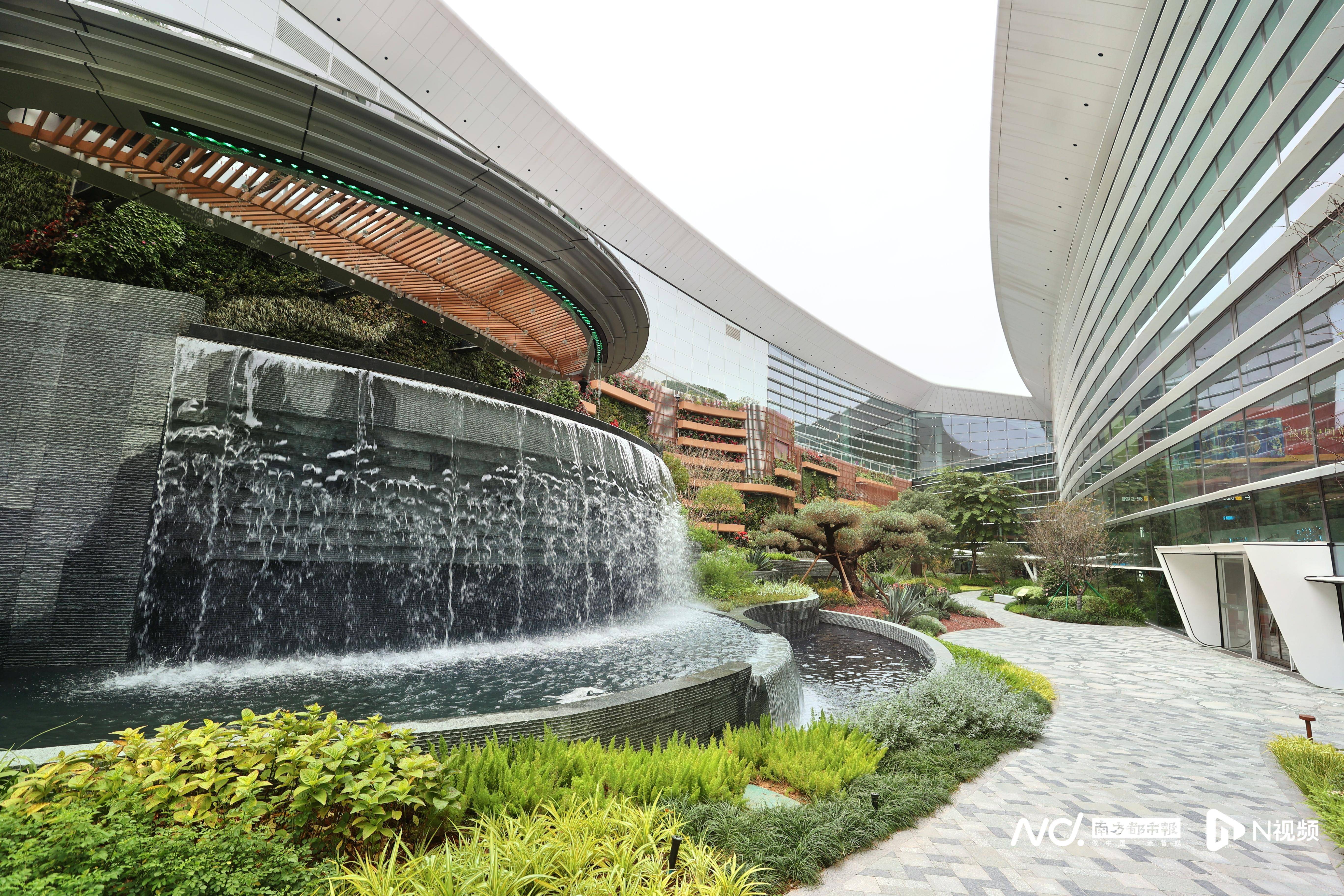 东花园作为华南国家植物园的生态科普宣教基地,汇集了全球五大洲的40余种奇花异草,让旅客无需踏出航站楼,即可沉浸式“环游植物世界”,感受生态之美;西花园以岭南山林自然地貌为设计灵感,融入丰富水元素,打造瀑布幕墙、银河倾泻般的巨型水帘及水下森林景观池,将自然生态与人文意境完美融合,极具观赏性。