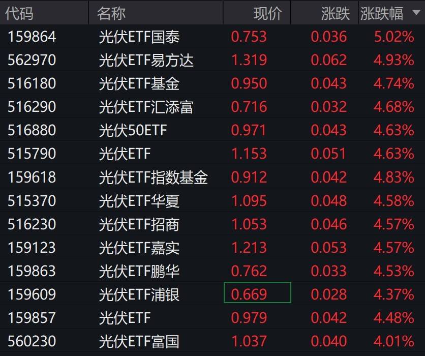 光伏概念股走强,TCL中环涨停,迈为股份涨超7%,隆基绿能涨超6%。