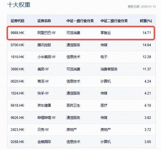 把握2026 AI商业化元年,关注港股AI核心工具!港股互联网ETF(513770)及其联接基金(A类017125;C类017126)被动跟踪中证港股通互联网指数,前十大权重股汇聚阿里巴巴-W、腾讯控股、小米集团-W、快手-W、哔哩哔哩-W等科技巨头及各领域AI应用公司,合计占比近77%,龙头优势显著。