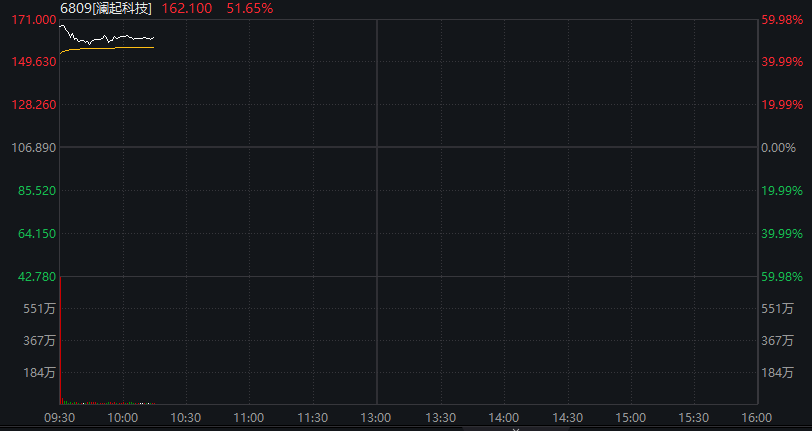 全球最大内存接口芯片供应商澜起科技在港股交易首日大涨57%,截至发稿,澜起科技涨超50%。