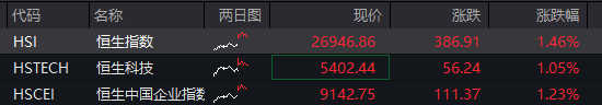 港股:截至发稿,恒生指数涨1.44%,恒生科技指数涨1.02%。