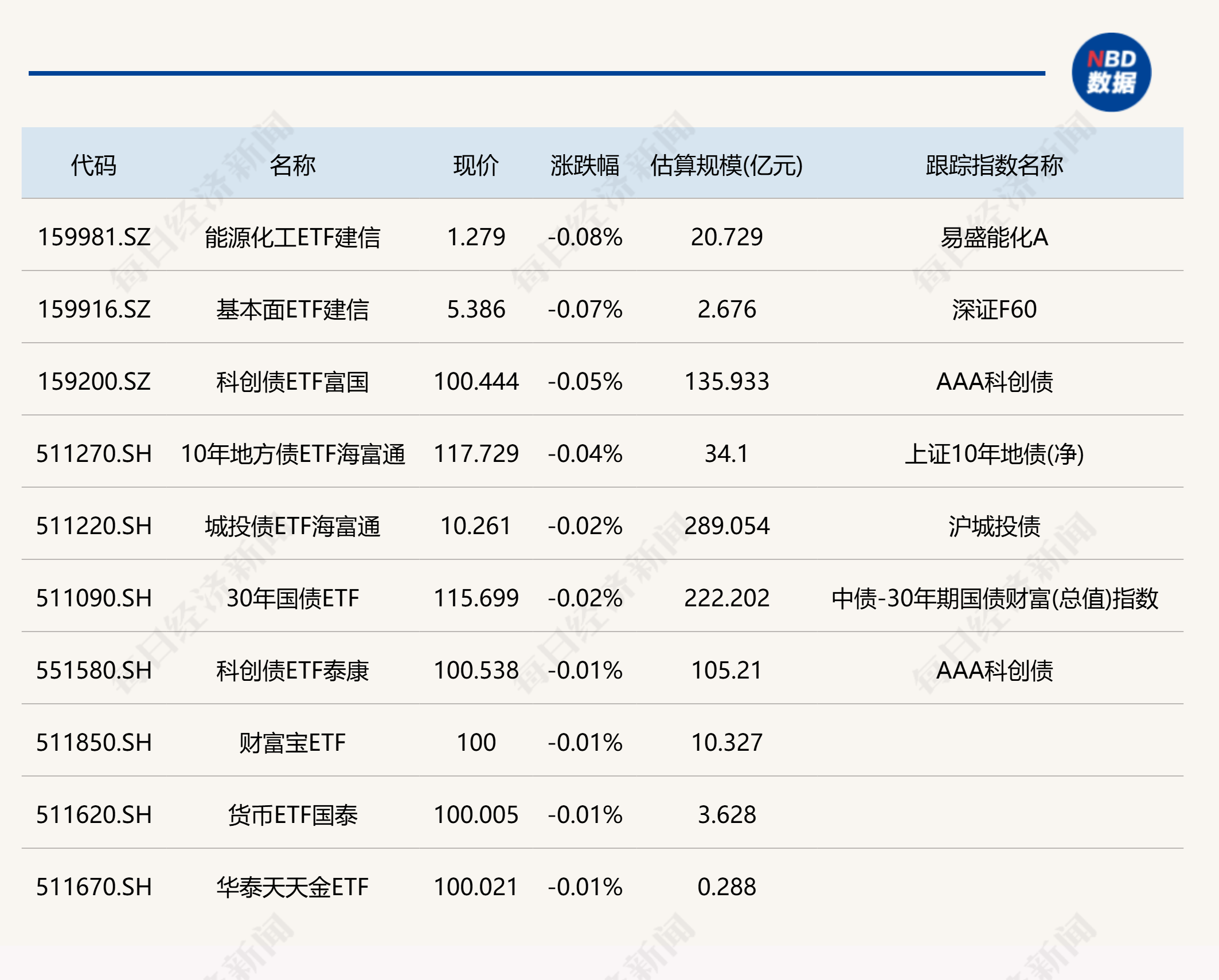 ETF涨跌幅方面,影视、创业板人工智能相关ETF涨超6%。