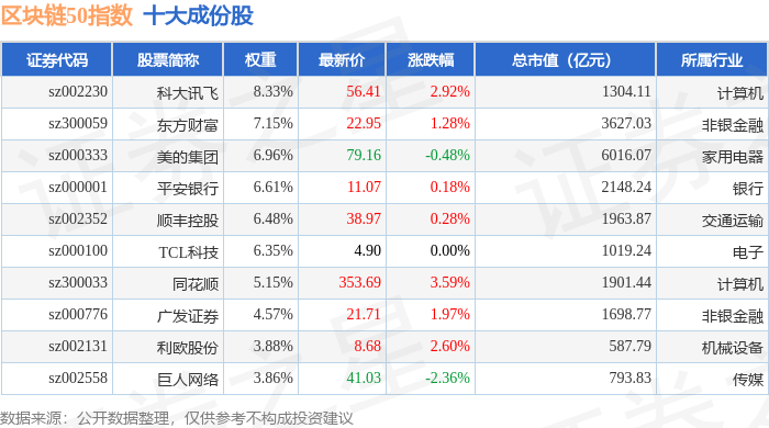 资金流向方面,区块链50(399286)指数成份股当日主力资金净流入合计19.3亿元,游资资金净流出合计12.75亿元,散户资金净流出合计6.55亿元。成份股资金流向详情见下表: