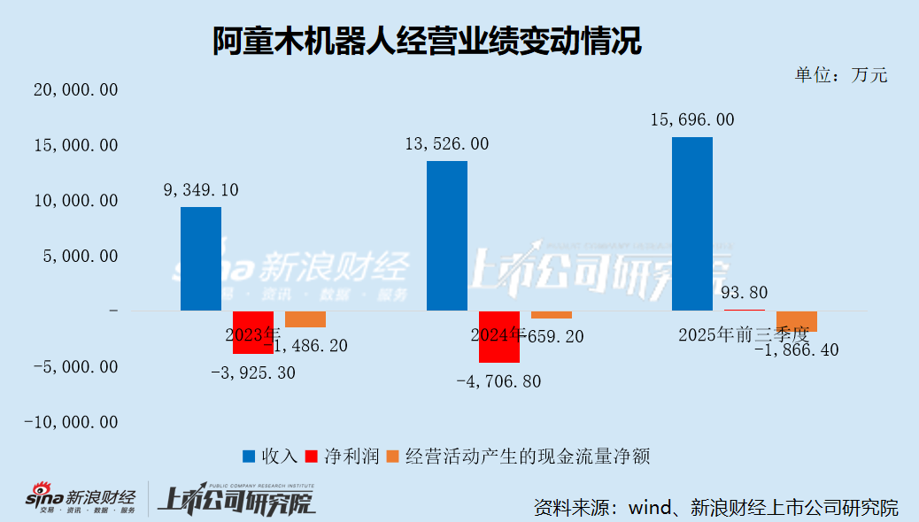 刘松涛及其一致行动人控制的投票权已超过30%的法定门槛,却未被阿童木机器人认定为控股股东,是否涉嫌违反上市规则有待商榷。近年来,阿童木机器人的收入高速增长,但盈利能力薄弱。2025年前三季度,尽管公司净利润扭亏为盈,但利润率仅为0.60%,盈利能力提升有限。同时,公司经营性现金流仍然为负,且净流出额同比扩大2.5倍。