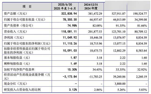 据招股书,2022年-2024年及2025上半年,江松科技实现营收分别为8.07亿元、12.37亿元、20.19亿元、11.81亿元;归母净利润分别为8834.59万元、1.31亿元、1.87亿元、1.11亿元。