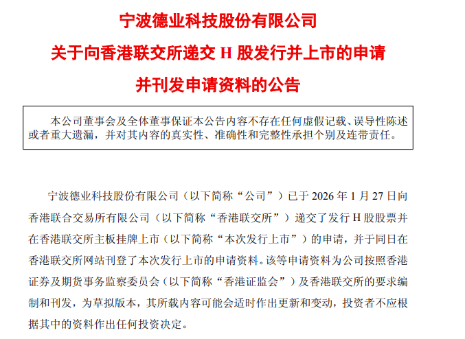 1月15日,德业股份在2026年第一次临时股东会上,审议通过了发行H股股票募集资金使用计划等系列议案,并于1月28日正式向港交所递交上市申请。这家原本专攻户用光伏逆变器和户用储能的企业,已成功拓展至工商业储能及大储系统领域。