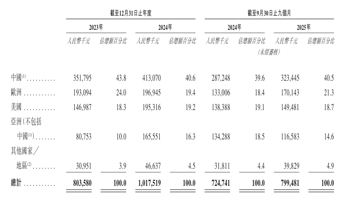 文石科技收入的地域构成也很有特点,公司没有拘泥于Kindle留下的国内市场,反而将重点转向海外市场。招股书显示,2009年,文石科技首款产品BOOX A60登陆欧美市场,自此打开海外市场。截至2025年9月末,公司的产品版图已覆盖全球100多个国家和地区。2023年至2025年前三季度,海外市场分别贡献公司总收入的56.2%、59.4%和59.5%,公司近六成收入来自海外。其中,来自美国市场的收入分别为1.47亿元、1.95亿元和1.5亿元,分别占期内总收入的18.3%、19.2%和18.7%。