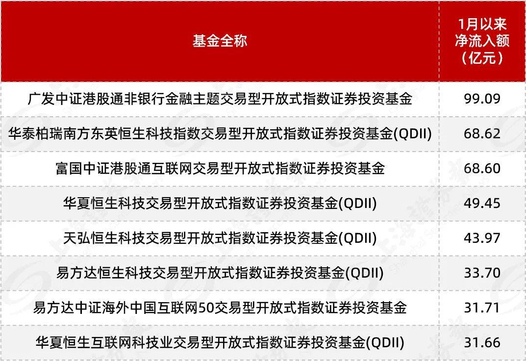 随着资金的持续涌入,“巨无霸”式港股主题ETF涌现。截至2月6日,富国港股通互联网ETF最新份额为1007.66亿份,创上市以来新高,这也是首只份额突破千亿份的港股主题ETF。