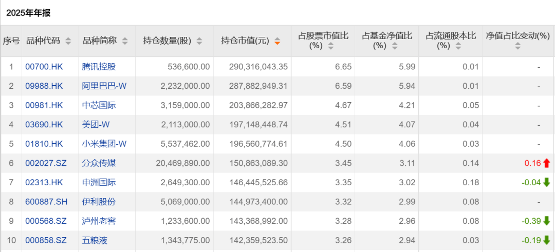 去年四季度,多位知名基金经理重仓持有港股科技股龙头。其中,截至2025年底,傅鹏博管理的睿远成长价值混合基金、张坤管理的易方达蓝筹精选混合基金均重仓持有腾讯控股、阿里巴巴-W。李晓星管理的银华心怡混合基金重仓持有腾讯控股、阿里巴巴-W、美团-W、小米集团-W等。