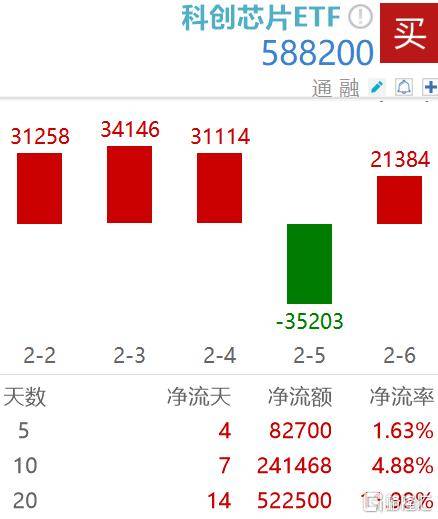 亮眼的业绩表现吸引资金持续涌入,截至2月6日,科创芯片ETF(588200)年内净流入47.38亿元。