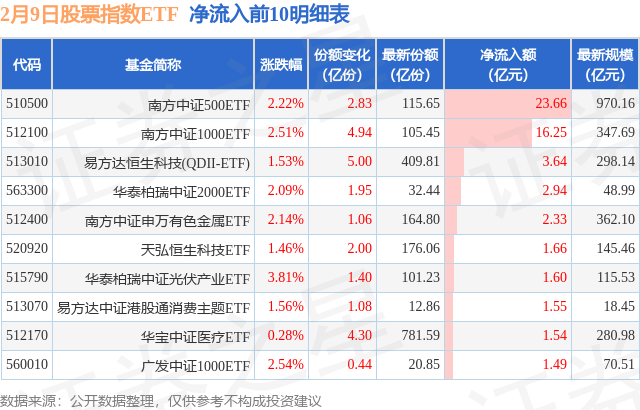 【ETF观察】2月9日股票指数ETF净流出11.23亿元