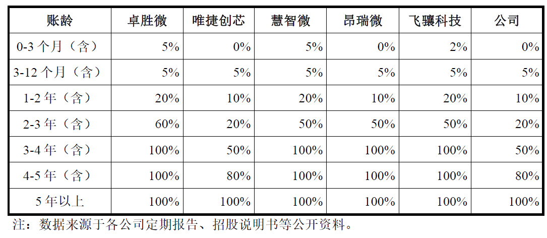 市场普遍质疑,应收账款周转率持续下滑的核心原因可能是锐石创芯整体放宽了信用账期。根据公司披露的信用政策,应收账款按账龄计提预期信用损失,1年以内计提比例为5%,1-2年为10%,整体计提标准较行业可比公司相对更加宽松。