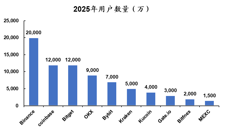 Coinbase的最主要市场在美国,同时也是美国最主要的交易场所,Oppenheimer分析师称2025年年初在加密货币现货交易中的市场份额为67%,在美国拥有超1亿用户,是美国加密货币用户首选。在美国主要对手包括Kraken和Binance.US、Gemini和Robinhood。在美国市场里coinbase用户规模、品牌影响力、合规认可度、机构参与度都最强,处于绝对领先地位,而其他平台各自有各自特点但整体影响力和覆盖面较小。Kraken是相较于其他平台,能有明显优势在美国排名第二的平台。