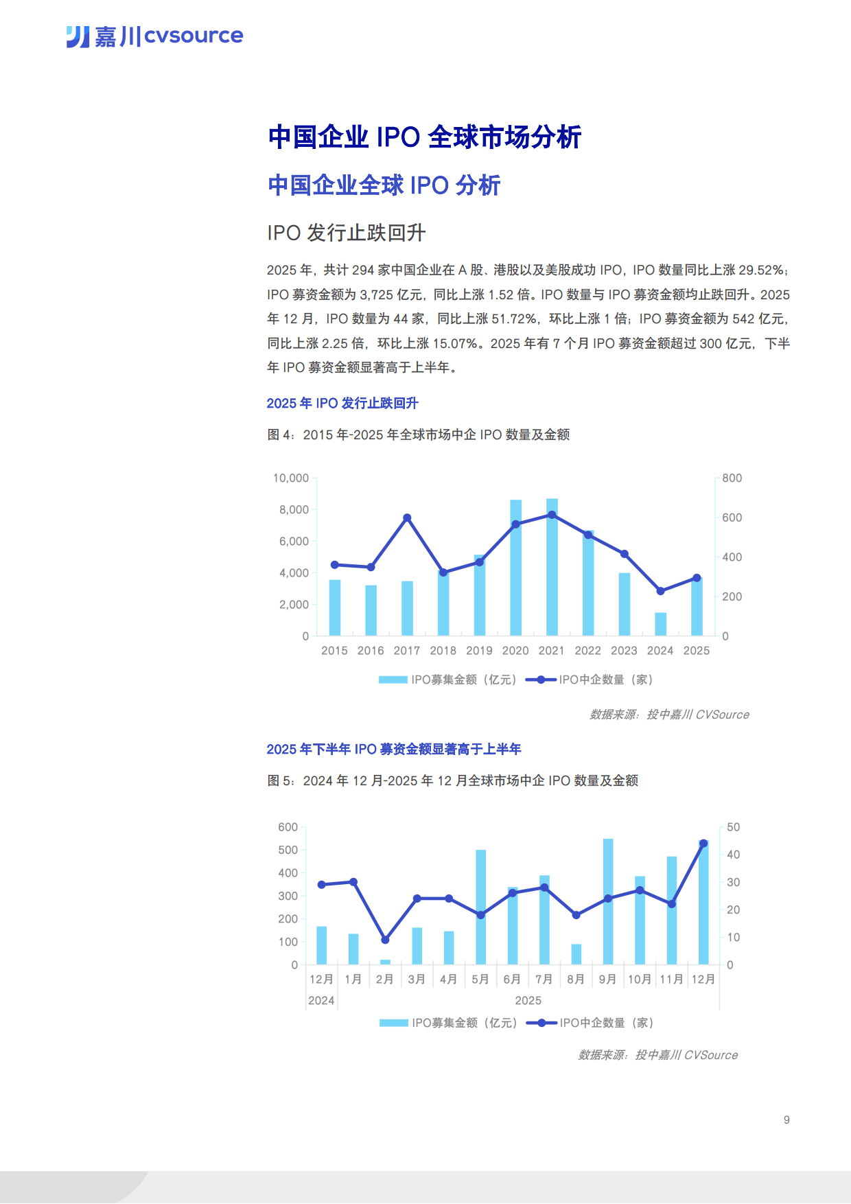 2025 年中国企业 IPO 市场呈现止跌回升态势,全球范围内 294 家中国企业成功上市,IPO 数量同比上涨 29.52%,募资金额达 3725 亿元,同比上涨 1.52 倍,各细分市场与行业表现分化显著。