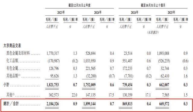 于2023年、2024年及2025年前10个月,热联集团的毛利率保持稳定,分别为0.9%、0.7%及0.3%。